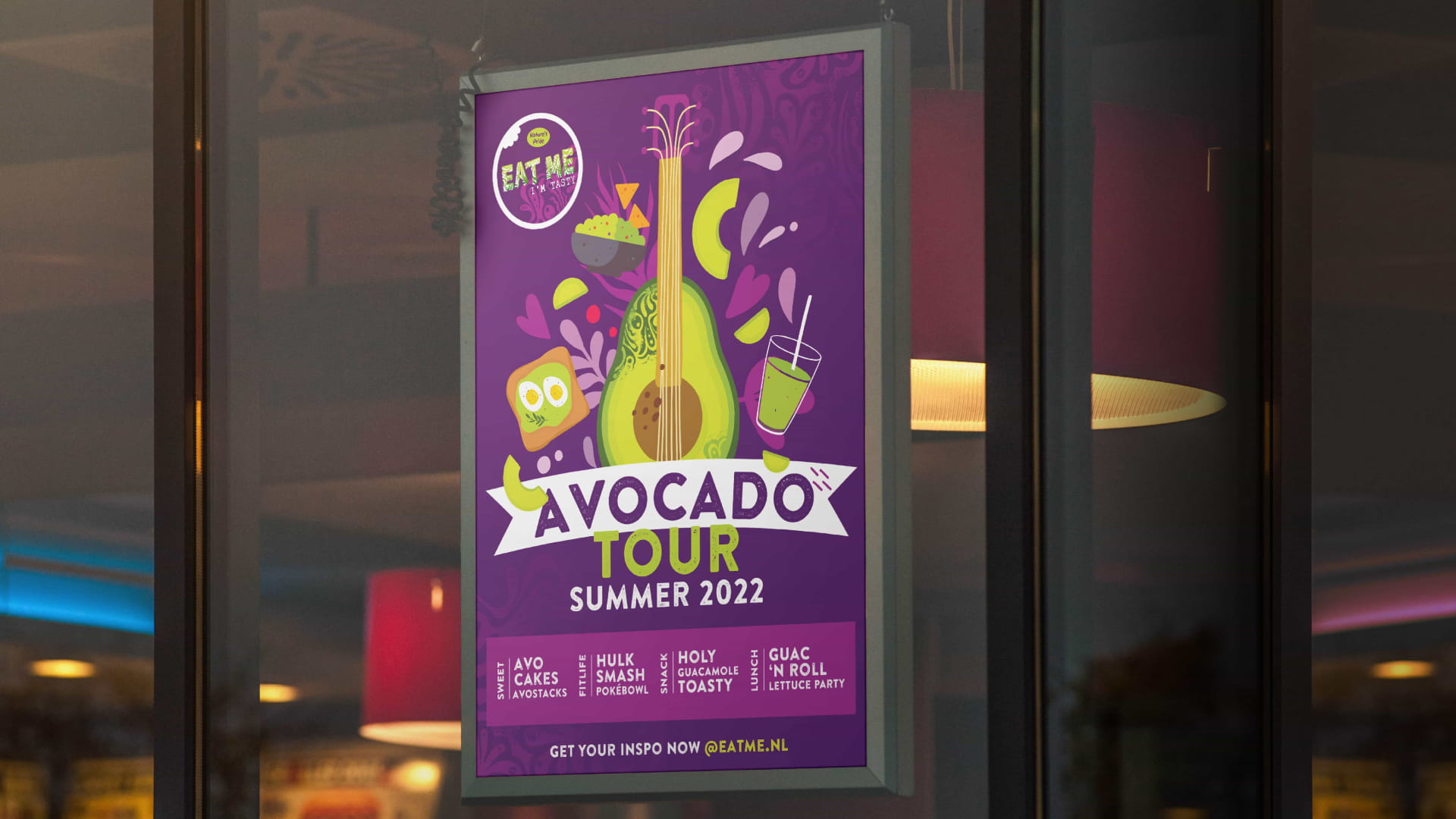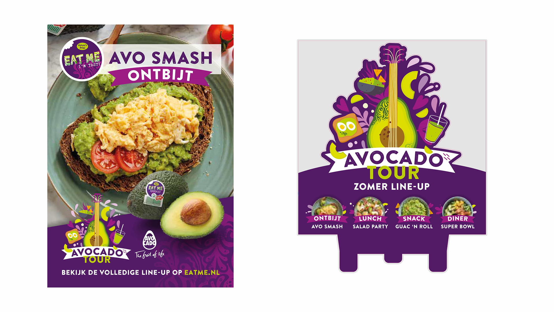 Voor Nature’s Pride ontwikkelde ik een kleurrijke campagne rondom de Avocado Tour. Met illustraties, activaties en opvallende visuals werd de veelzijdigheid van avocado’s op een speelse manier gepresenteerd.